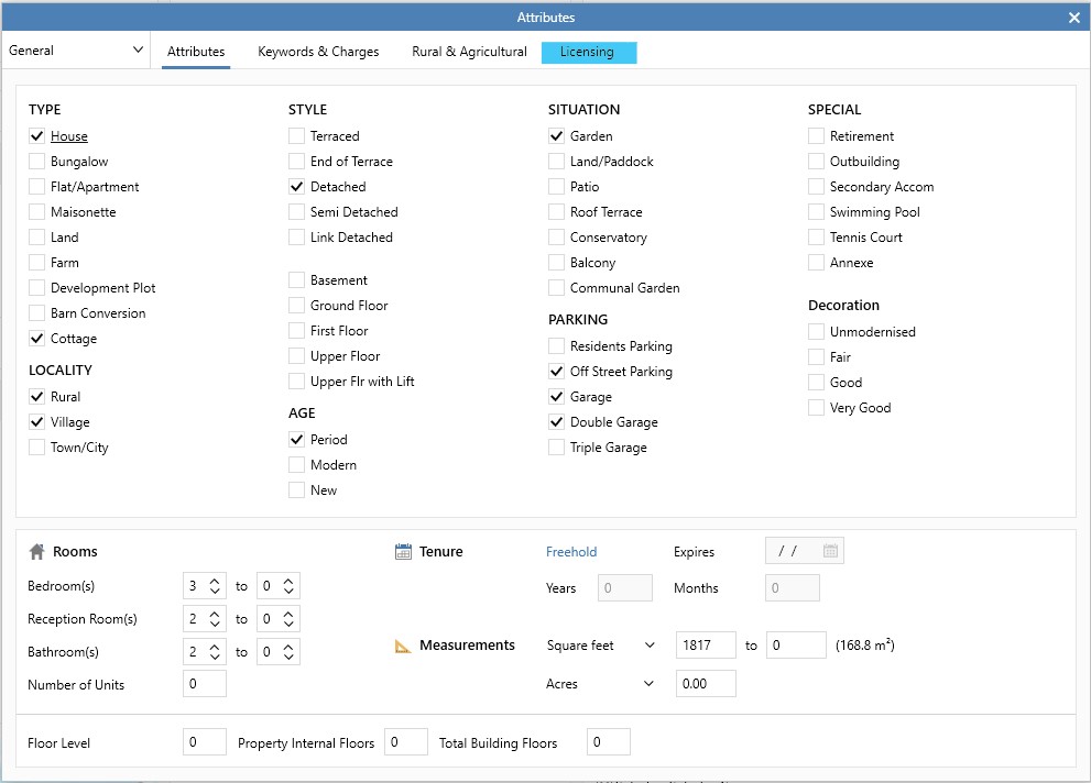 The desktop type of *Property Licensing* can be given to an application that replaces the 'Licensing' button on the property attributes screen. When an application has this desktop type, it will replace the native behaviour and will launch when selecting ‘Licensing’. The globals dictionary will contain the below key when launched by AgencyCloud:&#x20;